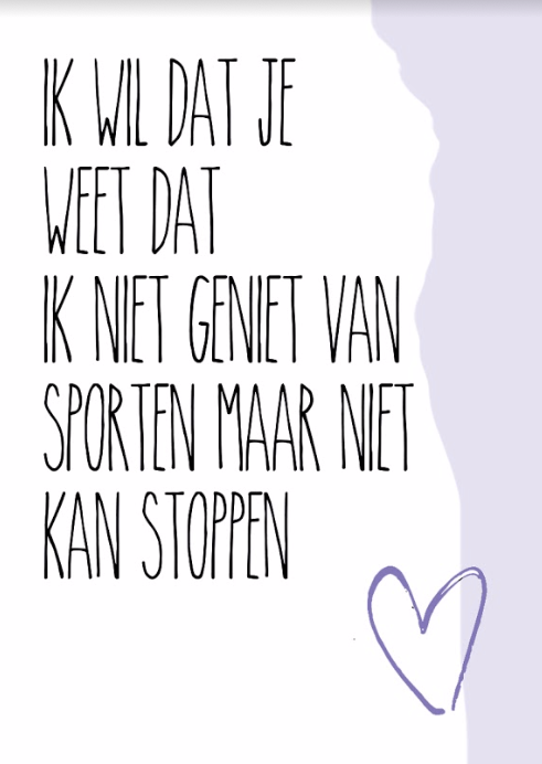 "Ik wil dat je weet dat niet geniet van sporten maar niet kan stoppen"